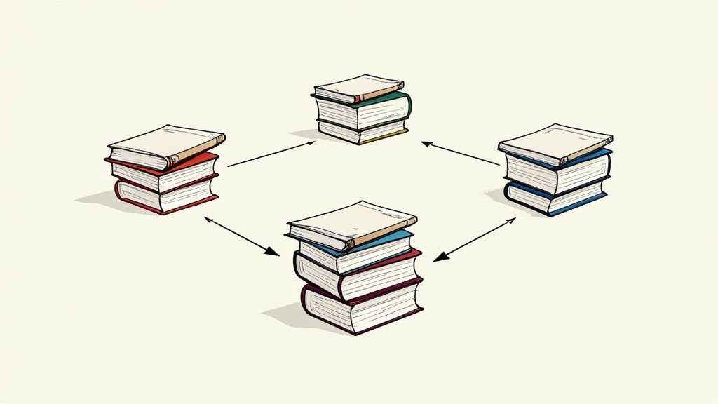 Let's say we're tackling a research question like this: “How does the gig economy impact the long-term financial security of recent university graduates in creative fields?” The beginning is always a bit messy—a jumble of notes from articles on student debt, snippets from interviews with freelance graphic designers, and some dry government labor statistics. The first real job is to bring some order to this chaos.